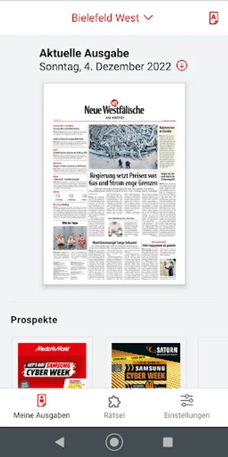 • The well-known ePaper version in a 1:1 image of the printed newspaper (pdf) and a reading mode optimized for mobile devices (article view)