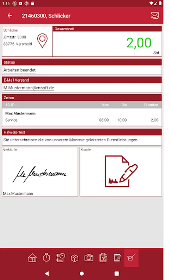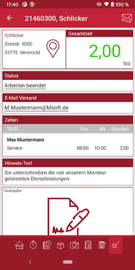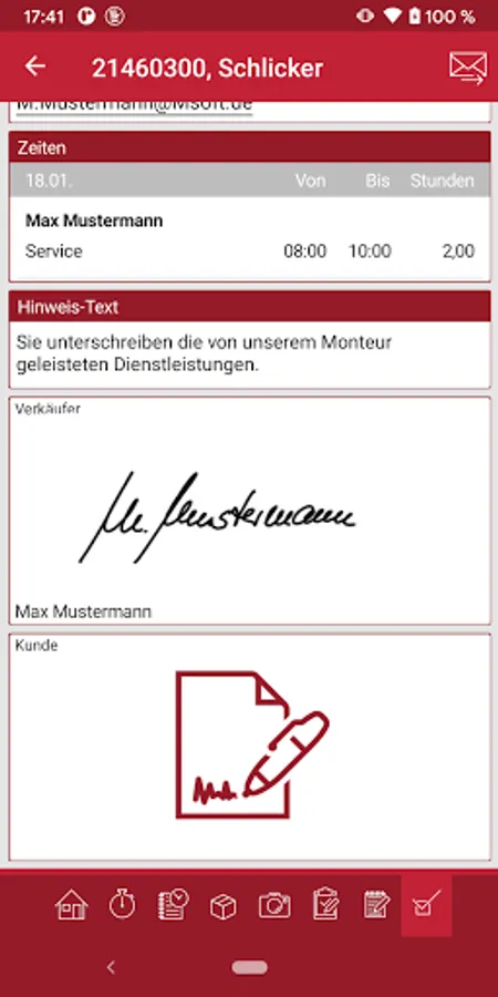 Working times, break times, travel times and set-up times can now be recorded easily and on the go. A meaningful fitter's report including photo documentation and the customer's signature is created directly on site and sent to the office in real time. You can also benefit from the advantages for day-to-day office work: the invoice can be prepared immediately after the end of the service assignment, because you can send all important information to the office in real time from customer service. So you are well equipped with the mobile customer service TIME4 Service from M∙SOFT.