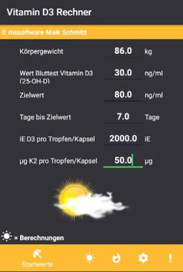 Vitamin D3 Rechner Screenshots