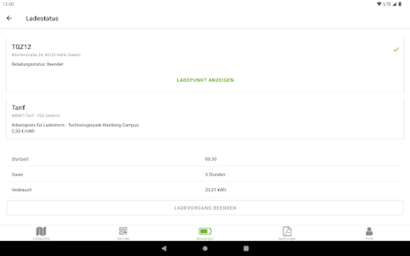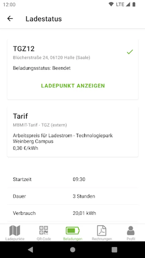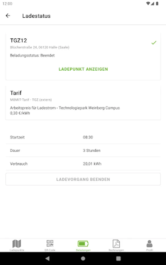 By scanning the QR code, you can easily start the load and track it in real time. One push of a button and the charging process is terminated.