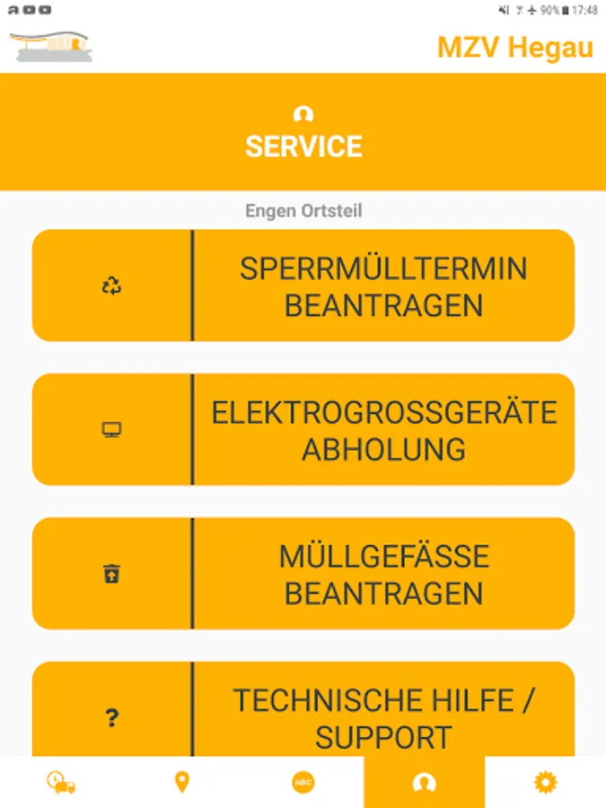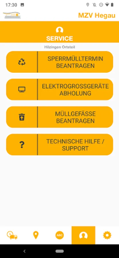 Direct and uncomplicated communication for customers of the MZV Hegau: The service function of the MZV Hegau mobile app, offers you the possibility to directly contact us and to process your service requests concerning: bulky waste, large electrical appliances, or to apply for a new ton.