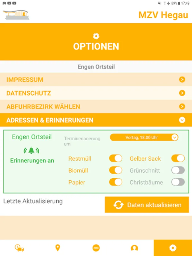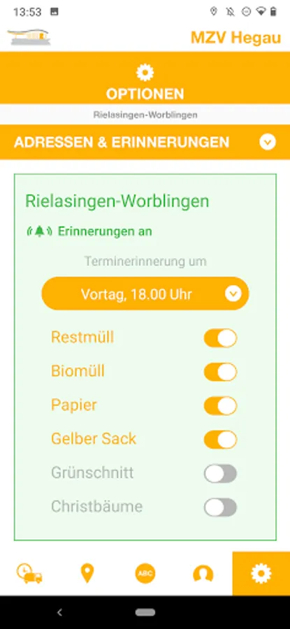 In the settings, you can specify for which types of waste - residual waste, organic waste, paper, yellow sack, green waste or Christmas trees - you want a reminder.