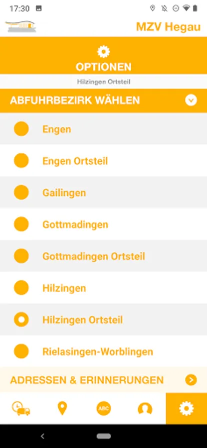 Mobile waste app for the Abfuhrbezirke the garbage disposal association Hegau: Engen, Engen district, Gailingen, Gottmadingen, Gottmadingen district, Hilzingen, Hilzingen district and Rielasingen-Worblingen.