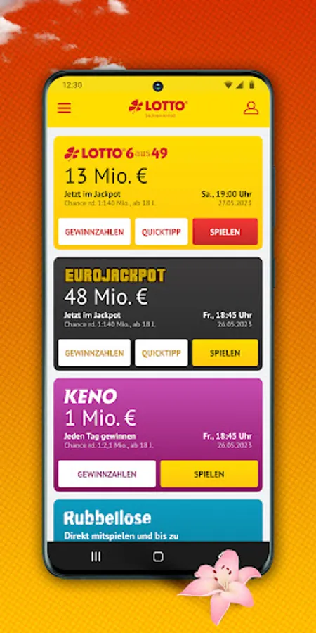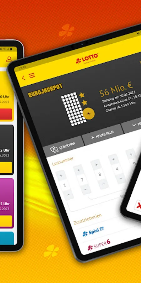With the LOTTO APP you play legally and safely at the original in Saxony-Anhalt. We offer these lotteries: LOTTO 6aus49, Eurojackpot, GlücksSpirale, KENO, BINGO!, scratch cards and the additional lotteries Spiel 77, SUPER 6 and plus 5.