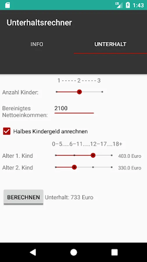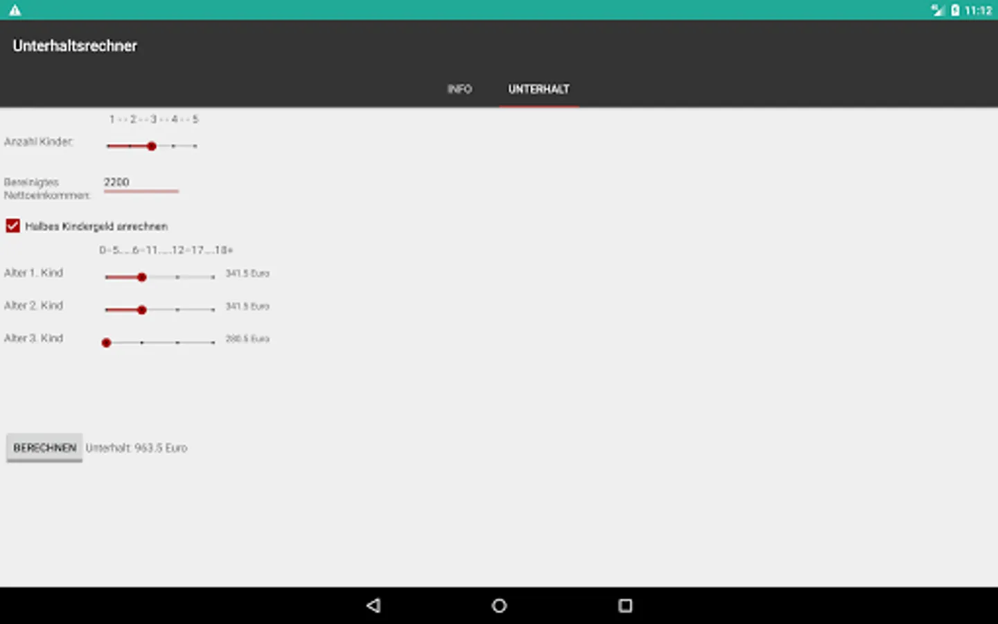 Would you like to know how much maintenance you have to pay for your children? With the maintenance calculator, the maintenance obligation according to Dusseldorfer table can be calculated within a very short time. The data to be entered is the adjusted net income of the debtor as well as the number and age group affiliation of the children.