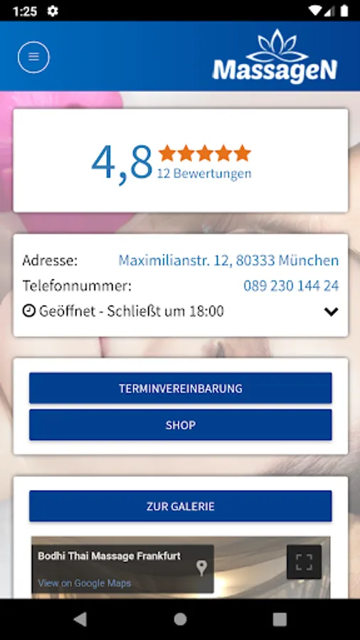 An app for massage services throughout Germany | Book appointments for a massage with an online shop for various massage products.