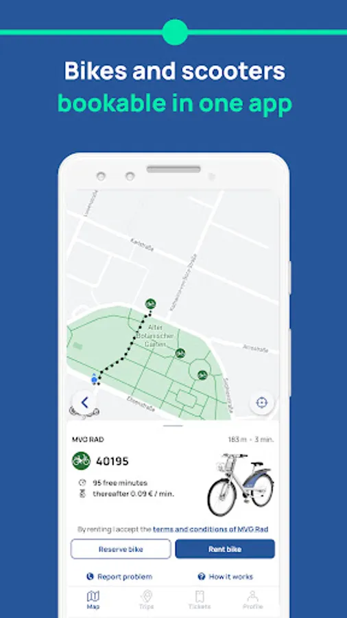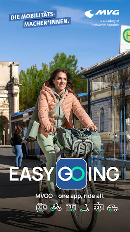 MVGO is the app for your individual mobility in Munich! This free app offers access to all sharing services provided by MVG and its partners, as well as public transport tickets by MVG. Whether you prefer riding an MVG Rad bike, public transport, e-bikes or e-scooters, you can conveniently book them with one app.