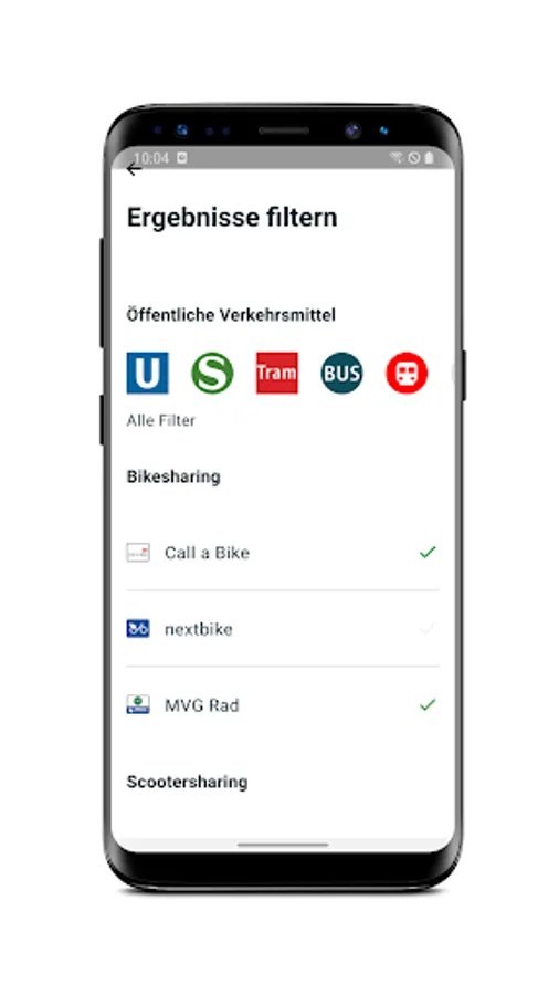 Nationwide mobility: MVG Germany provides timetable information including long-distance transport and multimodal routing with bike, scooter and car sharing within the participating regions.