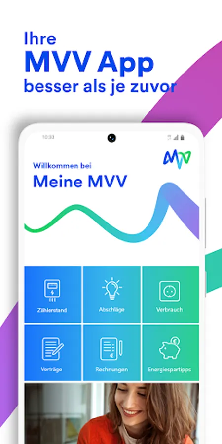 Whether on the train, in a café or at home on the couch - here you will find all the important functions and much more. The new "Meine MVV" app is easy to use and offers much more than just advantages for our customers. The app gives you the opportunity to submit current meter readings, view your bills and compare products at any time. Keep an eye on your consumption and contact us quickly and easily. Or read interesting articles on numerous topics related to energy in our guide. From electricity and heat to photovoltaics. Here you will find answers to many questions. We also provide you with important tips on saving energy.