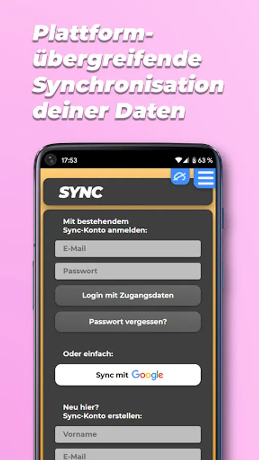 No registration required, but possible if you want to synchronize your data and also want to access it on your PC.