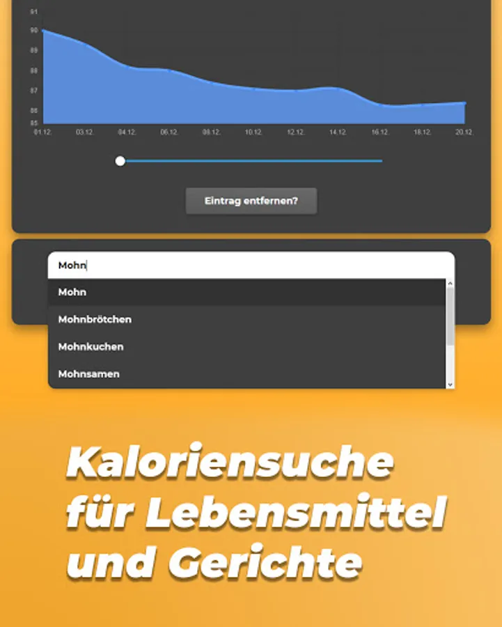 The calorie search for food and dishes also includes well-known items from the supermarket and some restaurants.