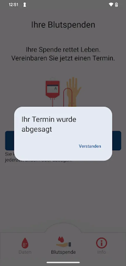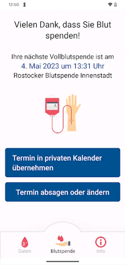 The app automatically calculates when you can donate again and reminds you. You can then book an appointment directly in the app. But don't worry, even if something comes up, you can always change your appointment or cancel it entirely.