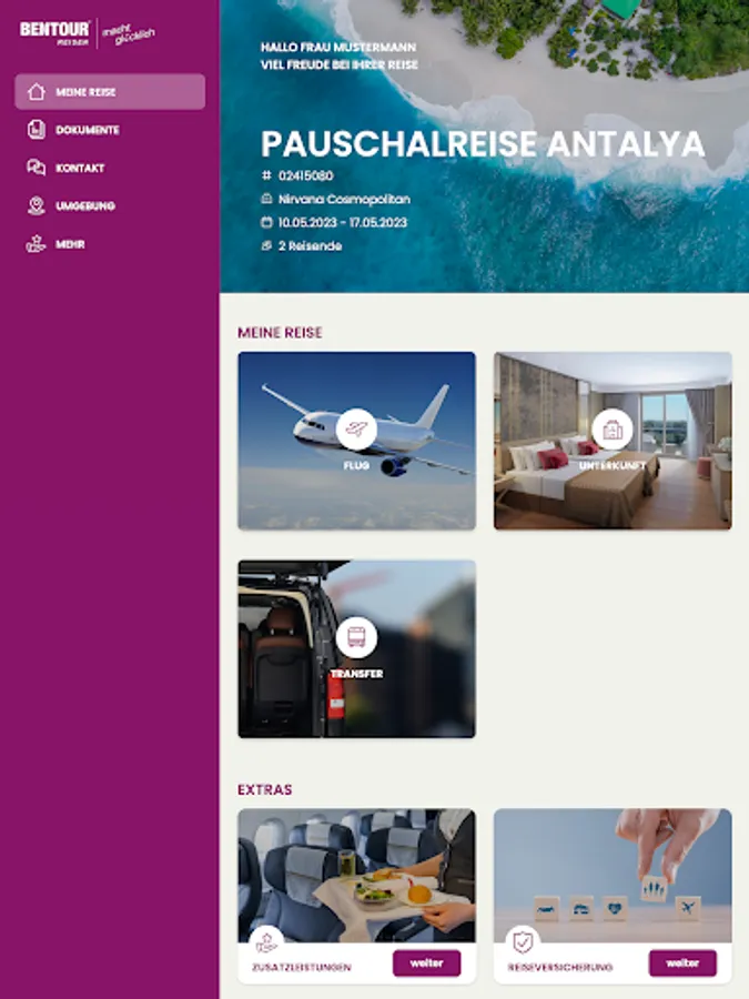 The myBentour app offers you helpful information and excellent service before and during your trip with Bentour - everything is very simple and from a single source: