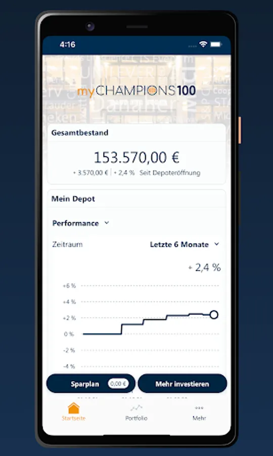 The myChampions100 app is the life cockpit through which all information on transactions and portfolio development of the 100 champions in your portfolio can be easily tracked online.
