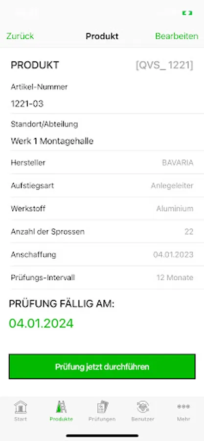 The legally prescribed test dates are stored once - the reminder is automatic. Checklists ensure that ladder inspectors reliably process all safety-related inspection points. Defects on ladders and steps can be documented immediately using a smartphone, regardless of location. The test report is downloaded as a PDF from the ladder test program and is available digitally for the ladder test book - no more handwritten forms and confusing test books.