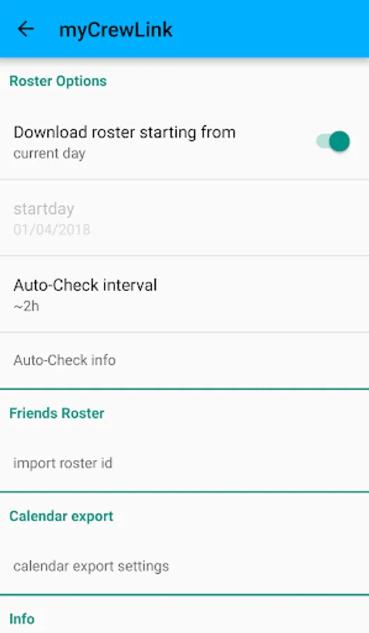 • Share your own crew schedule with a friend automatically every time you update your roster (end-to-end encrypted). Your friend gets a notification, if there is a new roster available, when she/he starts myCrewLink or myCrewLinkFriends. With this function your friends have always your latest roster. No need any more to send countless screenshots of your roster ;-). Your friend shall either have myCrewLink or myCrewLinkFriends (for free) to be able to receive your roster.