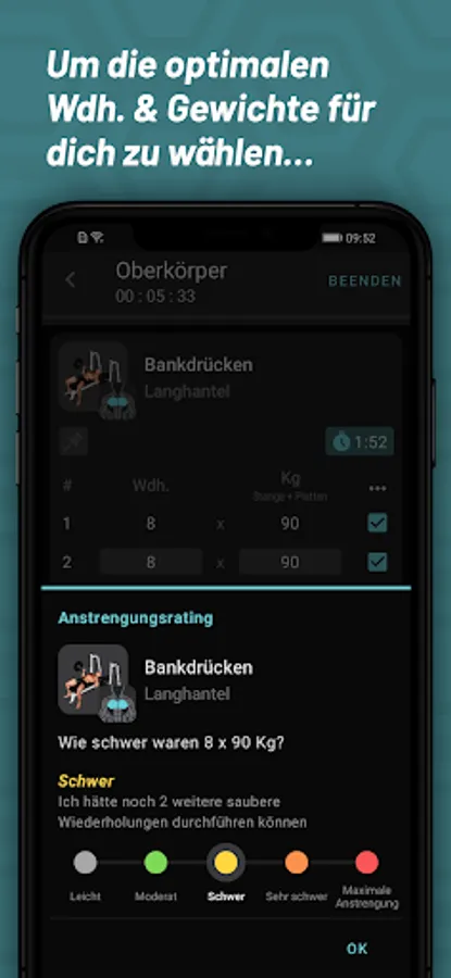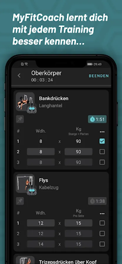 To ensure long-term muscle growth in strength training, MyFitCoach optimizes your training volume based on your training performance and your regeneration.