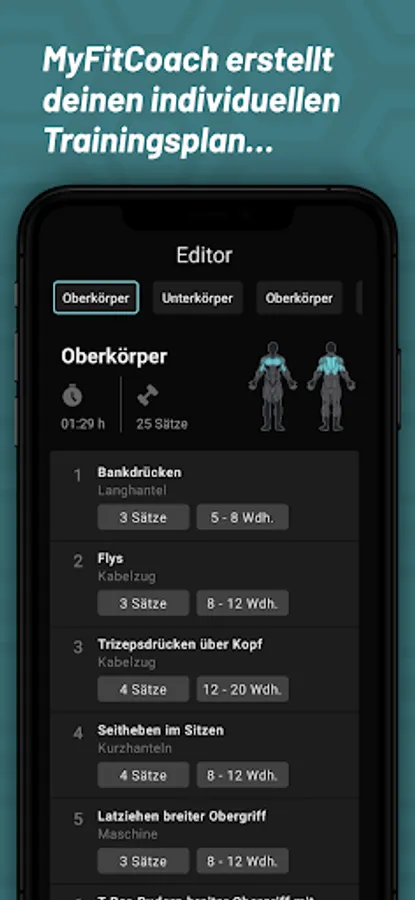 Let the MyFitCoach app now create your individual training plan for effective muscle building!