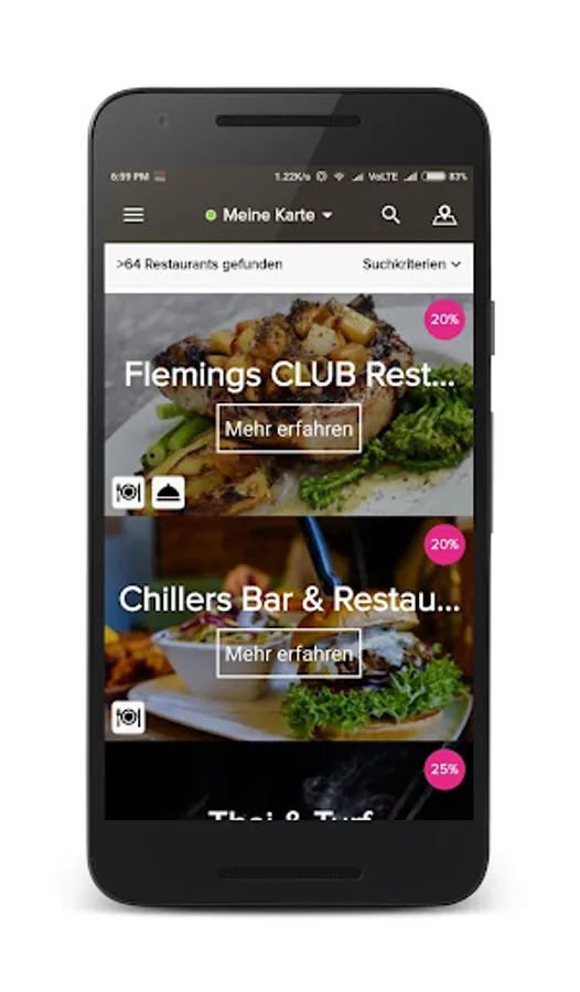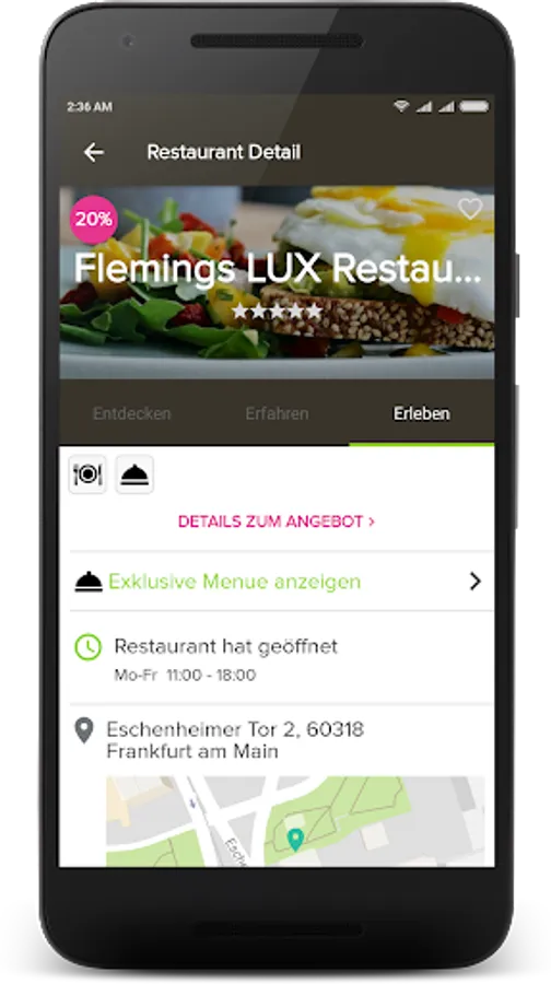 The app offers exclusive deals in more than 80 top restaurants in Frankfurt & amp; Rhine