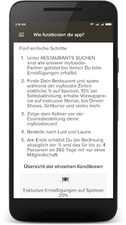 Terms and restaurants are clearly displayed in the app