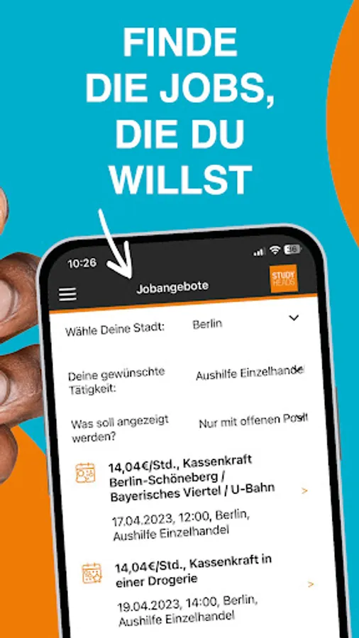 Get to know Studyheads, enter your key data via the Studyheads app and you already have the student job!