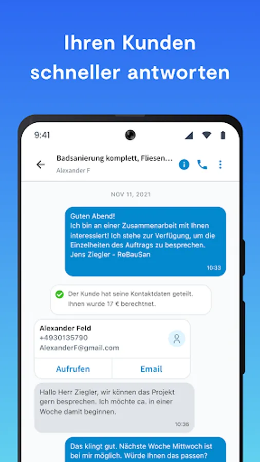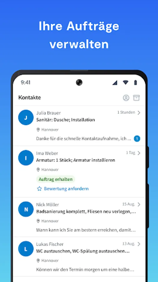 Find orders from A to Z for craftsmen and service providers - with the free MyHammer app for iPhone and iPod Touch. With this app, you can find suitable tenders for your company anytime, anywhere - whether for new customer acquisition or to fill job gaps. Submit offers easily via smartphone and get in touch with potential customers. The perfect addition to your daily craft business: Your personal MyHammer for your pocket.
