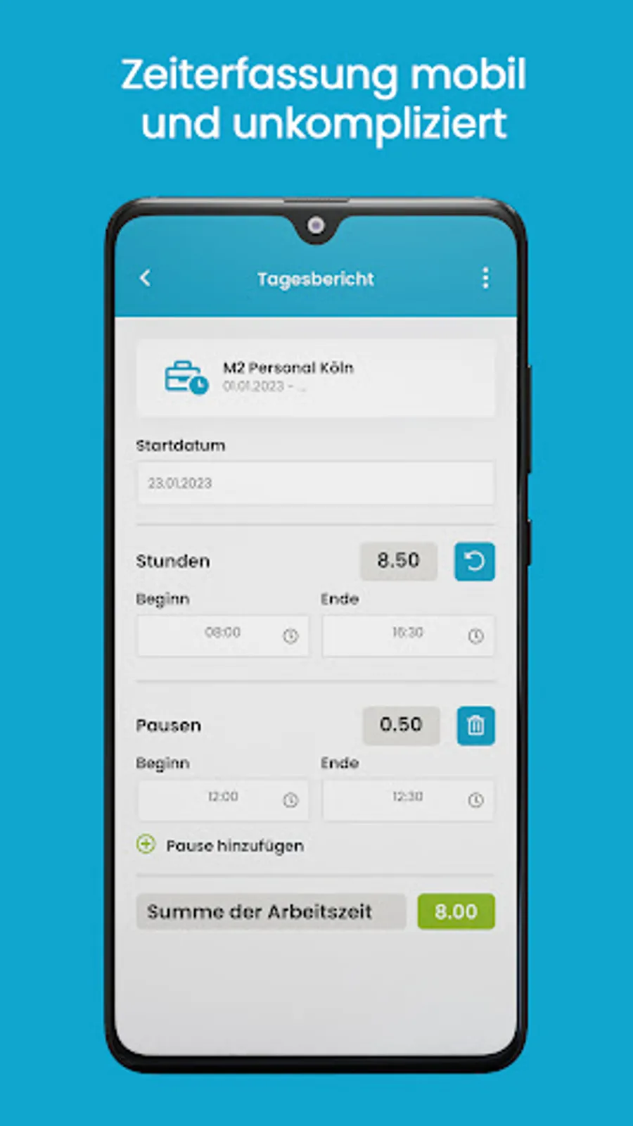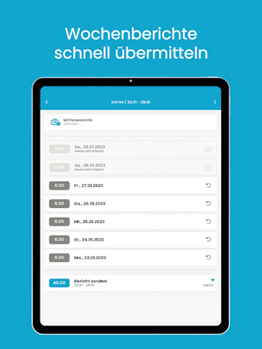 The myM2 application is provided by the M2 Personal Group. In addition to M2 Personal GmbH, the M2 Personal Group also includes AMS Personalservice GmbH, Arcon Personalservice GmbH, Elsta GmbH, Ematec GmbH, Pertec GmbH, Pro Personalservice GmbH, Profitec GmbH and Starotec GmbH. The app is used for communication, resource planning, time recording and the application for absences.