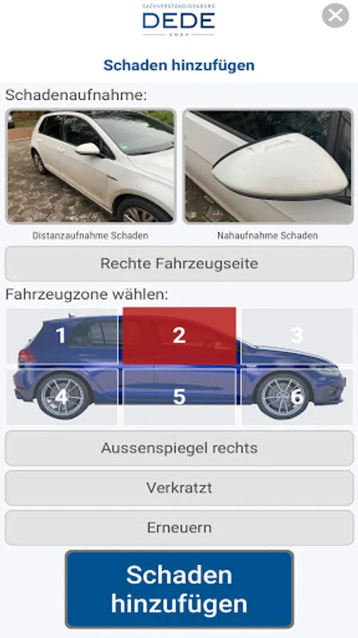 Many features, such as scanning, have been integrated in order to make it easier to collect data and to avoid sources of error when transferring data. All damage is quickly and efficiently recorded in detail with realistic manufacturer and model-related graphics. In addition, high-resolution photo documentation can be added individually for each damage.