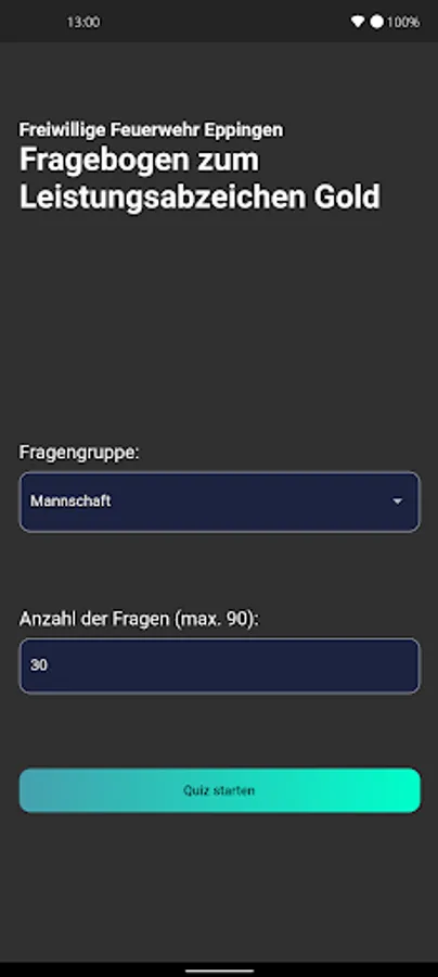 Quiz with the practice questions for the gold performance badge according to the Baden-Württemberg State Fire Brigade School, created for the Eppingen volunteer fire brigade.