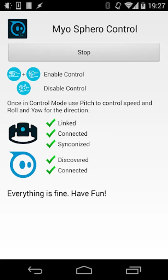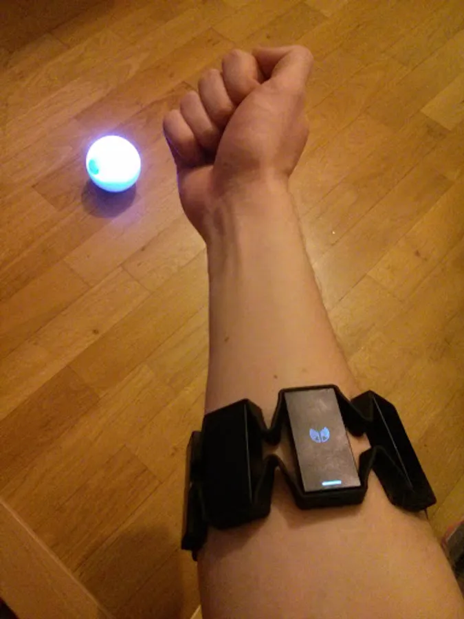 This app lets you control the Orbotix Sphero 2.0 robotic ball with your Myo motion control and gesture control armband bracelet. It is intuitive and easy to learn. Can you master it at the highest speed?