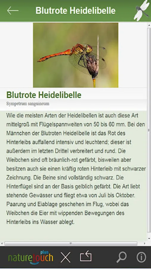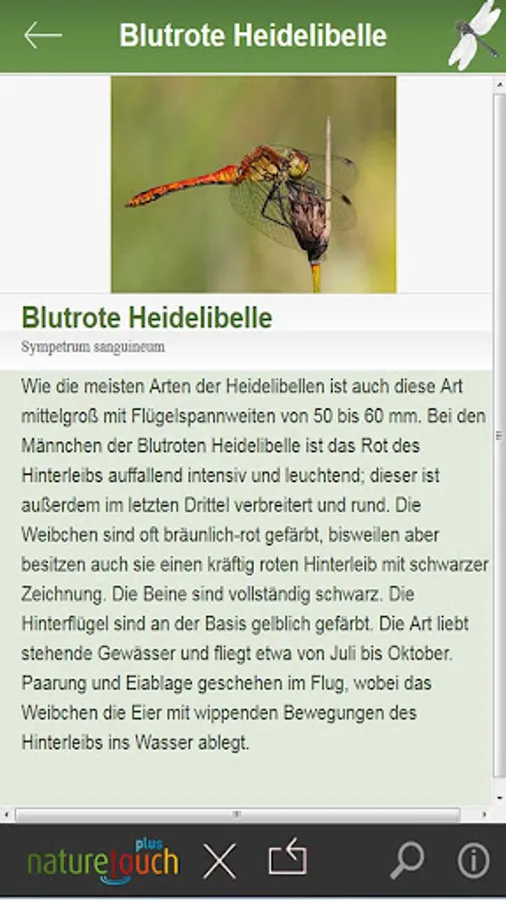 recognize and describe dragonflies. An animal leaders of Nature Touch. Dragonfly determination: With a few clicks for this animal - and easy for everyone. 35 species, Germany. With detailed portraits and many photos. Dragonfly, damselfly, demoiselle, Feuerlibelle, Darter, Samaragdlibelle, Beautiful Demoiselle, damselfly. ,
