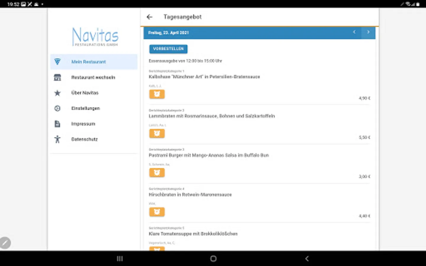 Menu plans, news, surveys, pre-orders and much more - you can find everything about your Navitas company restaurant in this app.