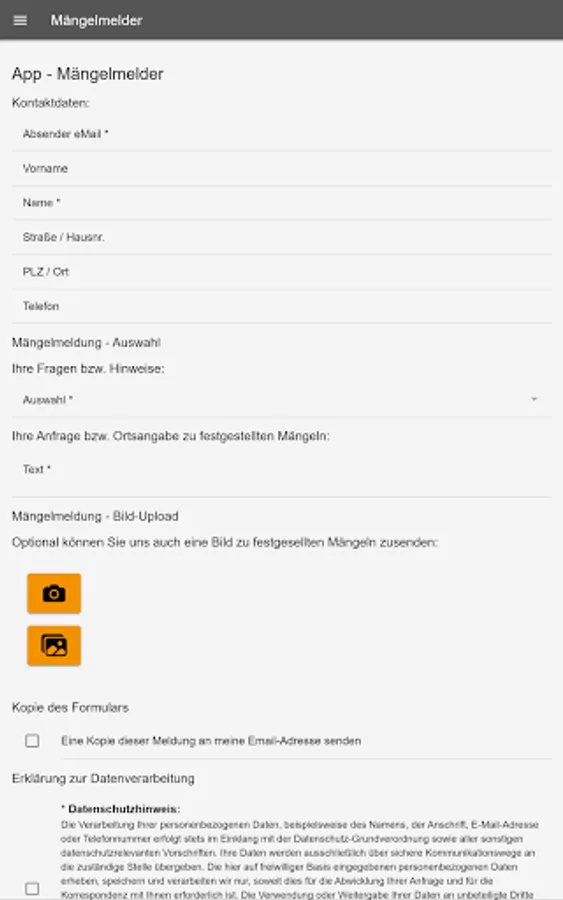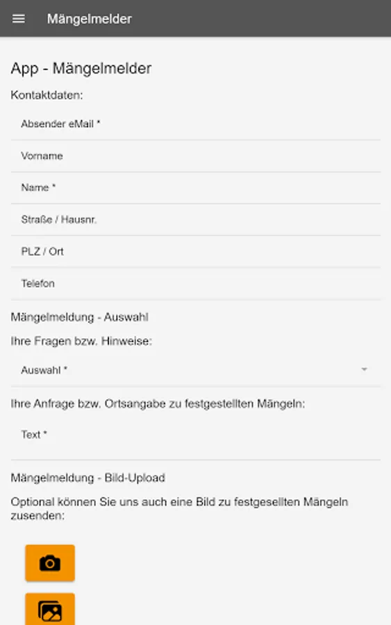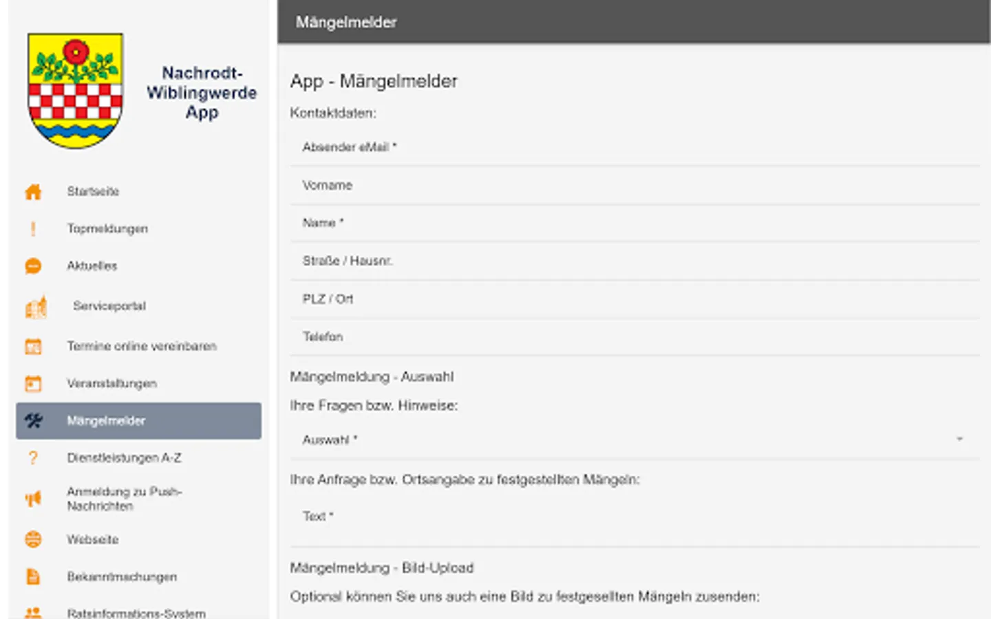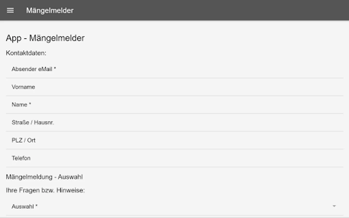 Have you noticed a specific deficiency? You can use the "Defect reporter" to inform your administration easily, optionally with a photo and geotagging, so that the position at which the defect is located is transmitted to us.