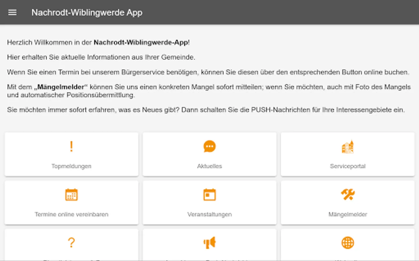 Find out everything about our beautiful community in the Sauerland! what's new? What's going on in Nachrodt-Wiblingwerde? In our app you can find all upcoming events, find out the most important news and read the latest announcements.