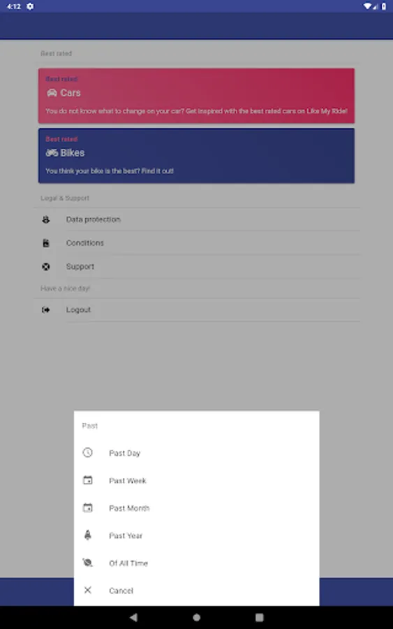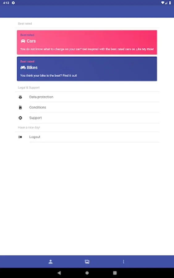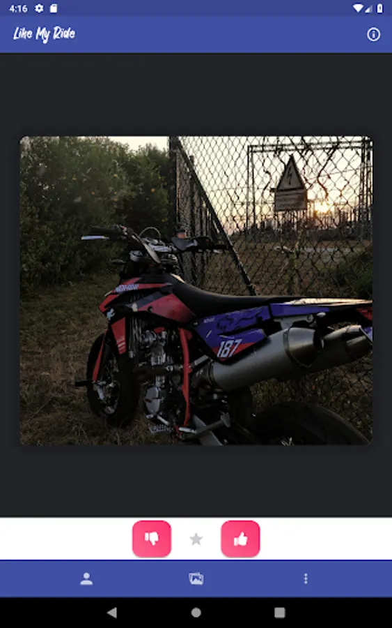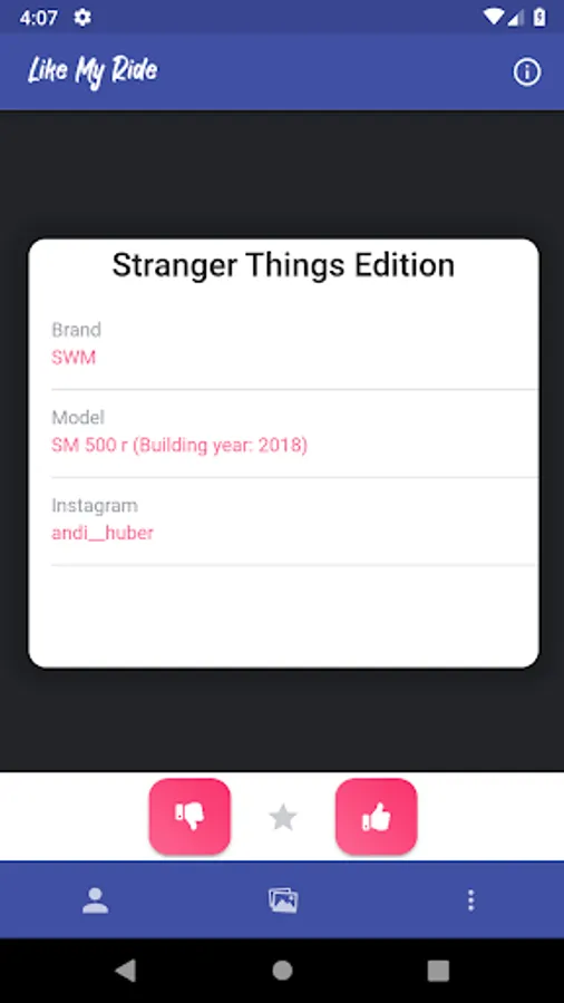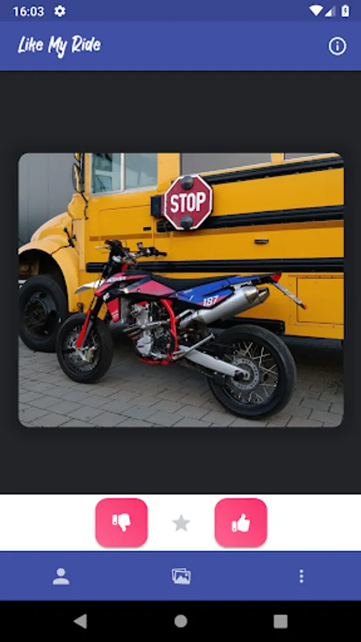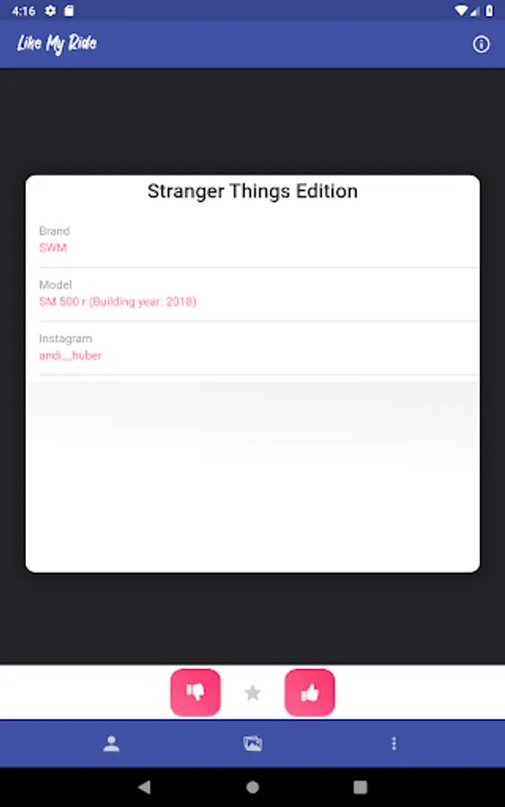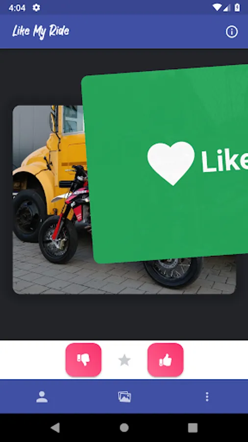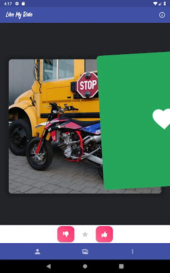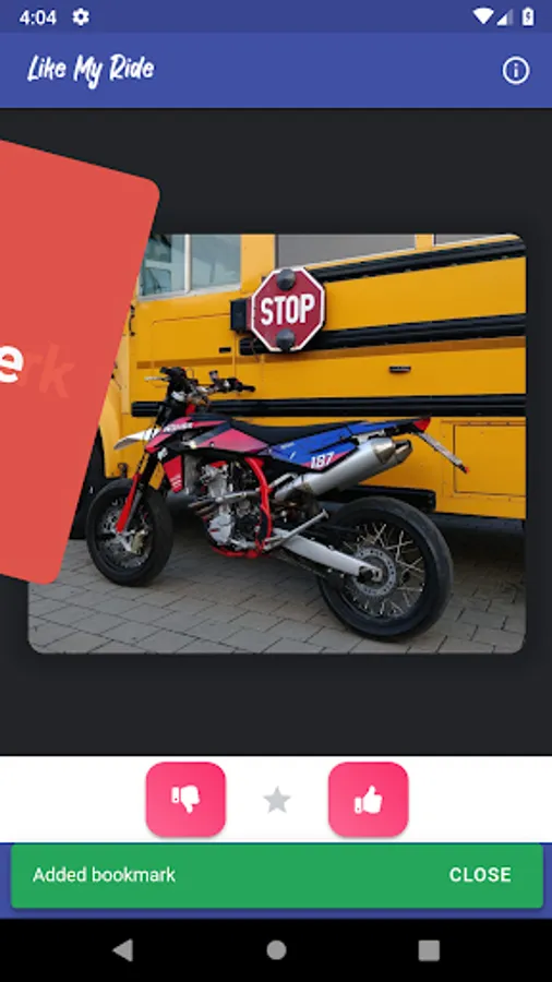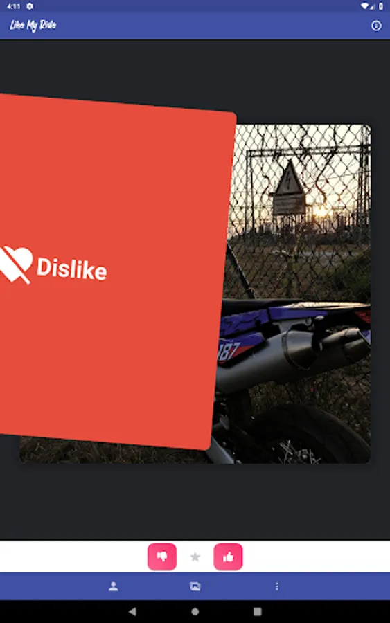 Swipe left to dislike, swipe right to like, swipe up to bookmark.