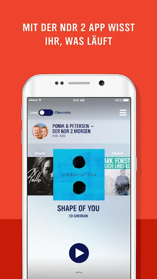 With the NDR 2 App even closer to our program and our moderators! All the latest hits and the best eighties in the livestream, the direct line to the studio with our messenger, the latest news, great competitions and more!