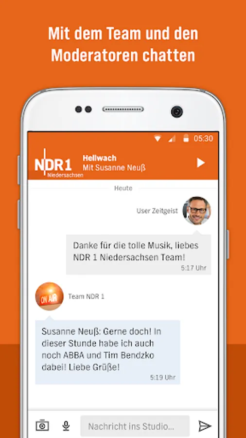 Messenger : The Web takes you right into the studio of NDR 1 Niedersachsen: chat, send voice messages and photos!