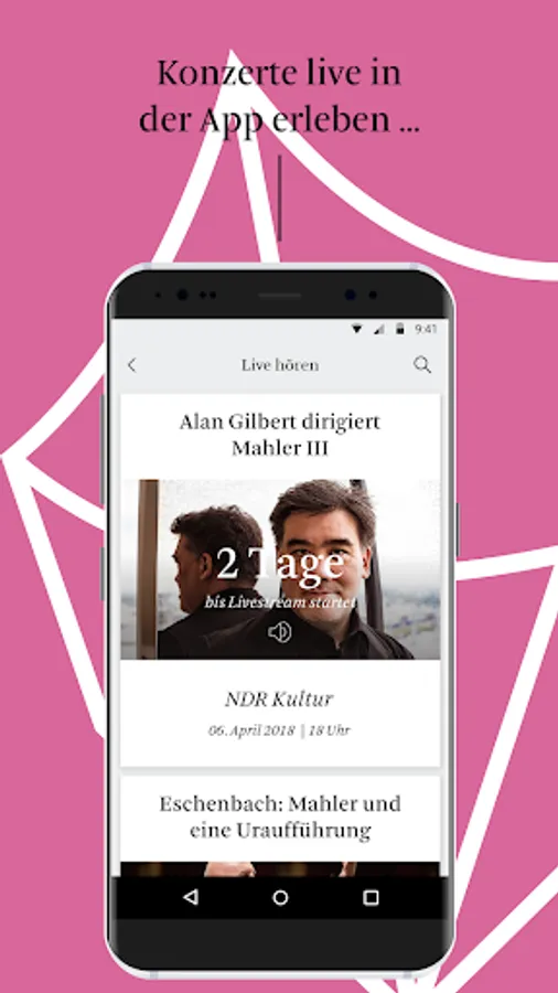 The NDR EO app : Buy your Tickets , please follow our Concerts streaming LIVE and participate in exclusive competitions . Download now for free!