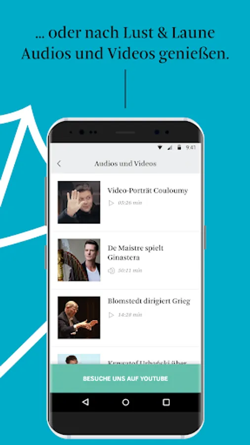 With the NDR EO app plug the Residence Orchestra of the Elbe Philharmonic Hall in your pocket: Find your favorite concert in the concert calendar, you will not miss a broadcast date of our concert recordings on NDR Kultur, 3sat, ARTE and NDR television, experience our live streams and live recordings to get updated News to current occupation or program changes or onsale straight to your phone.