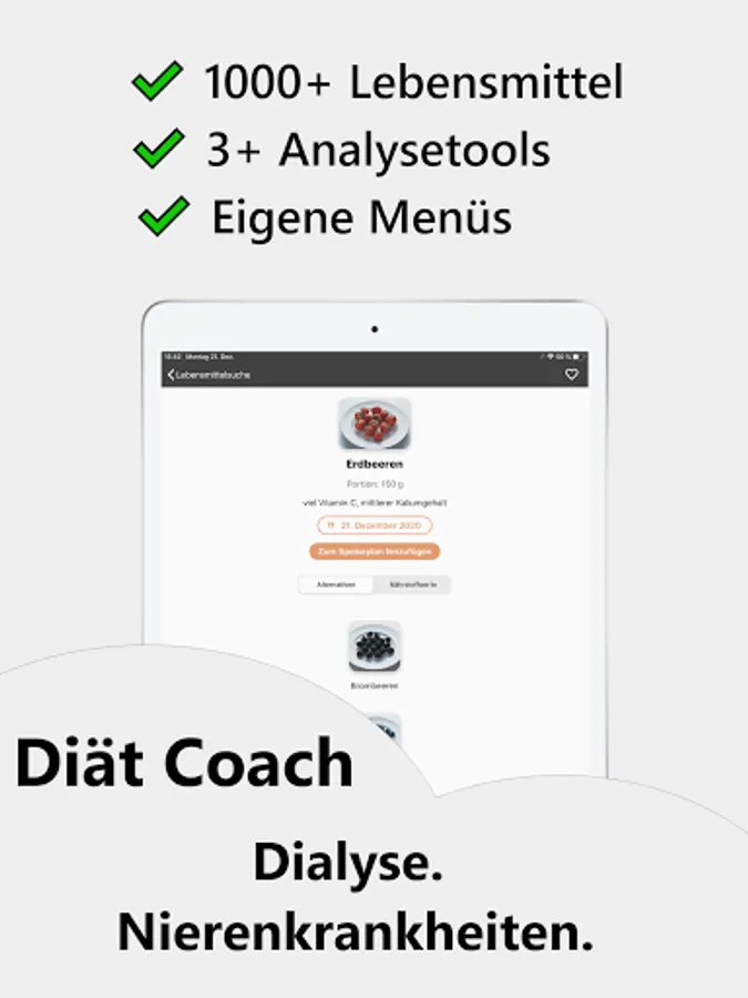 More than 30 years of experience in nutritional advice and medical care for people with kidney and high blood pressure diseases and dialysis have flowed into this app.