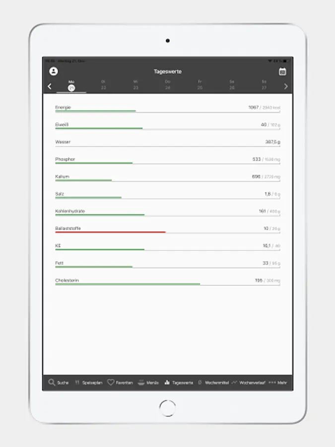 Your own recipes and a list of your favorites make it easier for you to enter. You can track your progress over the week and month. Nutritional information provides interesting facts about your nutritional focus.