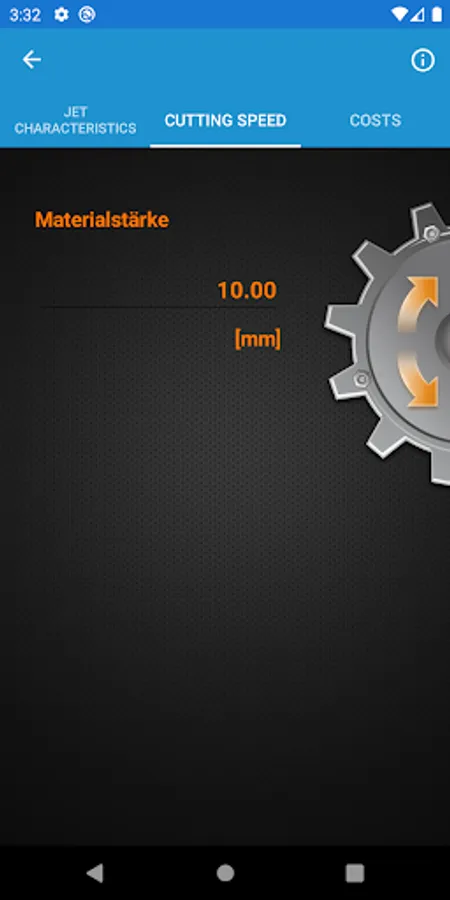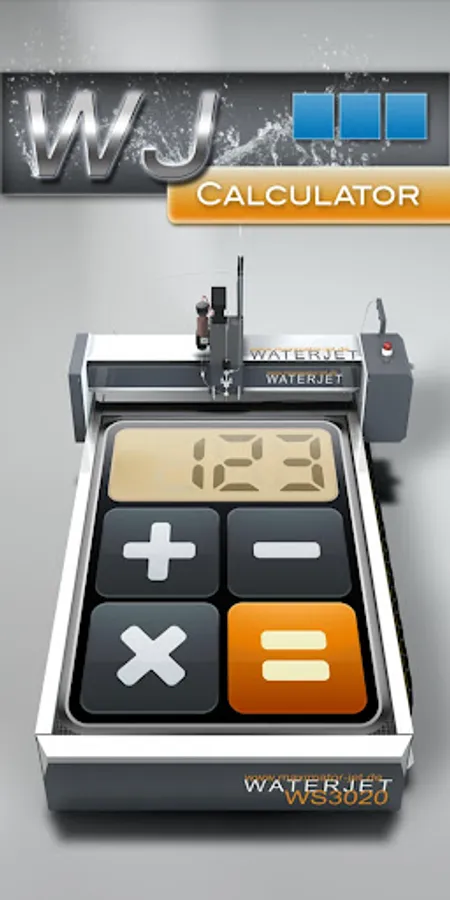 The Waterjet Calculator, like the Waterjet App from the same company, is divided into 3 basic areas.