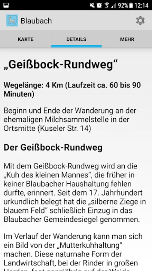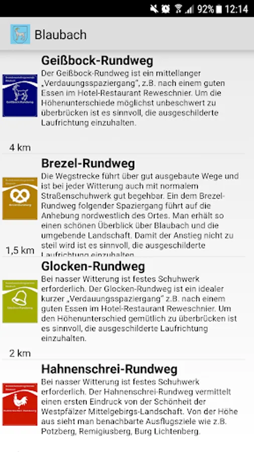 In addition to the above local trail system Blauenbach maintains its own hiking and walking trails.