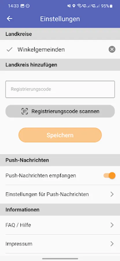 In order to be able to use the app in your region, you must be activated by your municipality. The municipality will provide you with a barcode on the respective website or other media, which you must photograph with the app. You will then see all the water levels in your region and, if necessary, receive notifications if a level exceeds the limit set by the municipality.