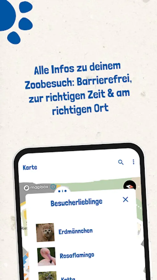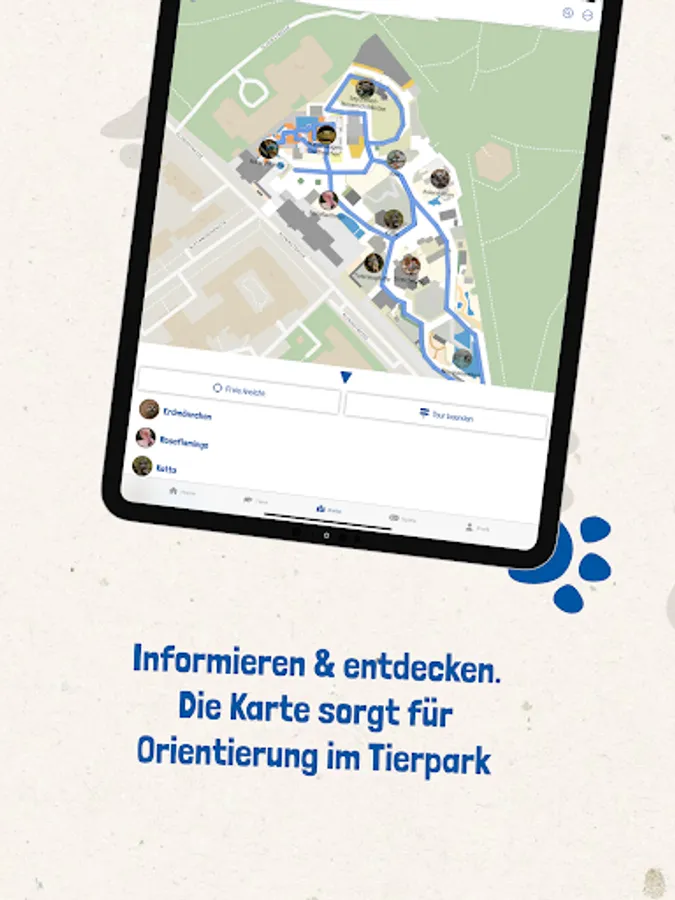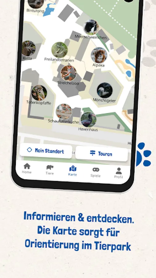 The map within the app enables easy orientation in the zoo and offers information about upcoming feedings, among other things.
