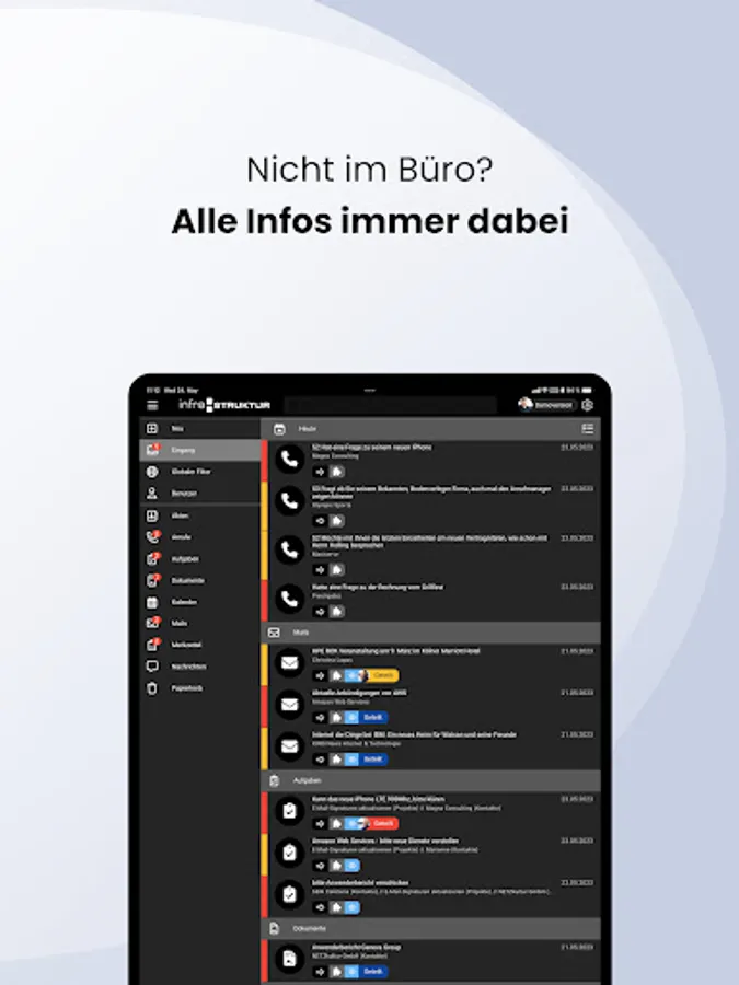 Infra-structure as XRM office software offers you a digital workplace with solutions for easy collaboration and more transparency throughout the company. The goal? Finally everything you need in one place!