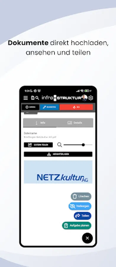 This app is intended exclusively for users of the software infrastructure, a product of NETZkultur Informationssysteme GmbH. Feel free to contact us if you are not yet an infra-structure user. More information at www.infra-struktur.de