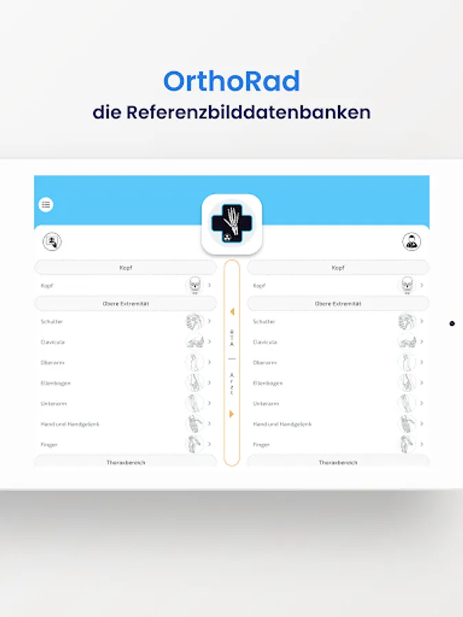 OrthoRad - the reference database for skeletal radiography OrthoRad serves as an offline reference (image) database for skeletal radiography for both MTRs and doctors in their daily routine.