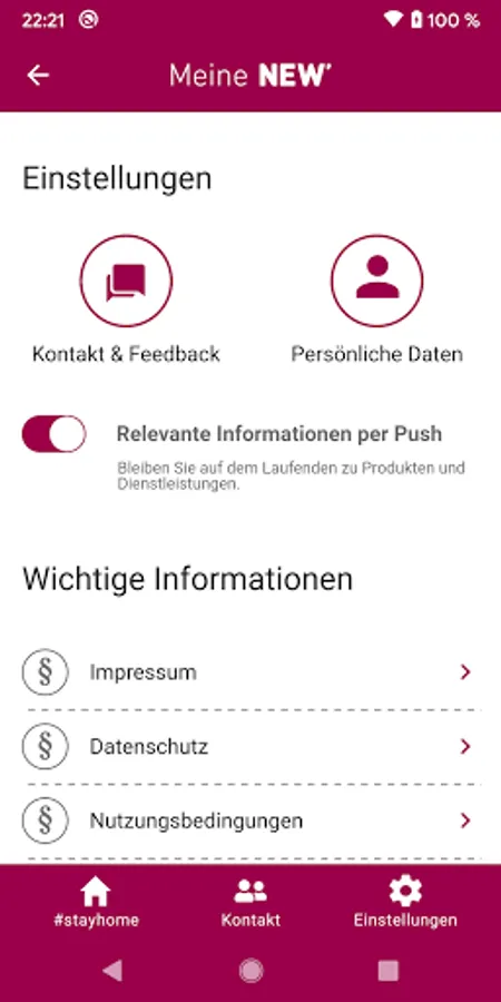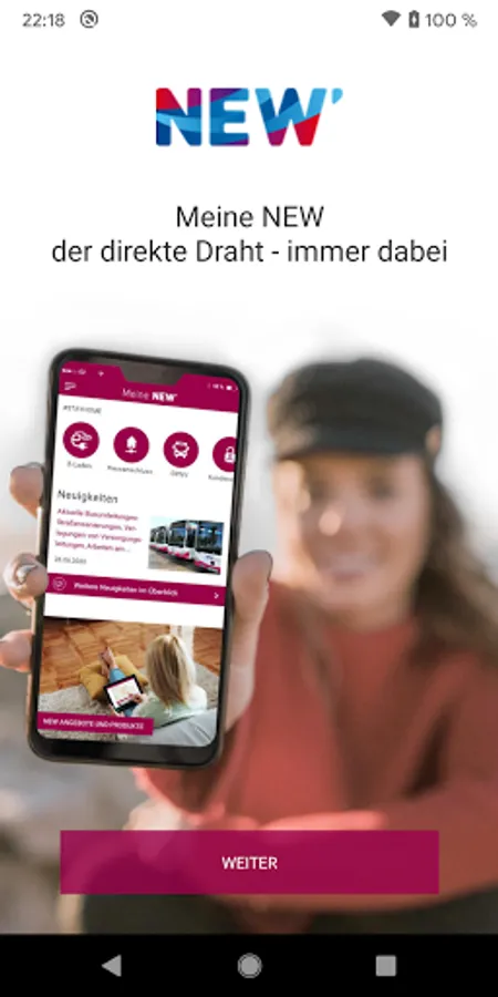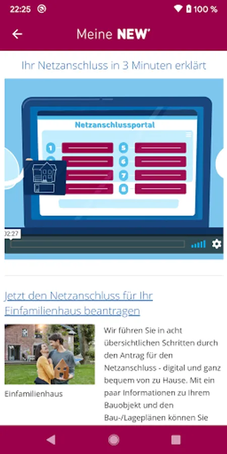 To e.g. get to your child’s swimming course by bus. Or just check whether your electricity discount can be reduced after you have replaced some old household appliances with new, more efficient appliances. You can also easily order a network connection for your new building using the My NEW app.