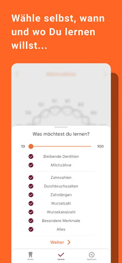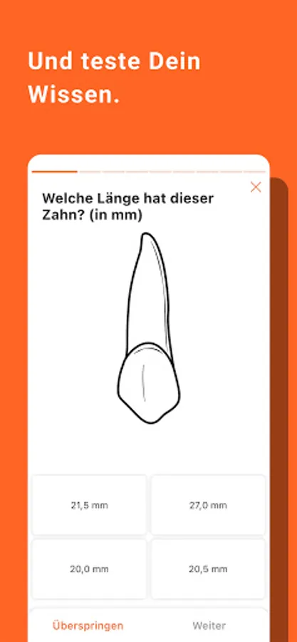 Test yourself in the dental quiz and even choose which topics should be queried.